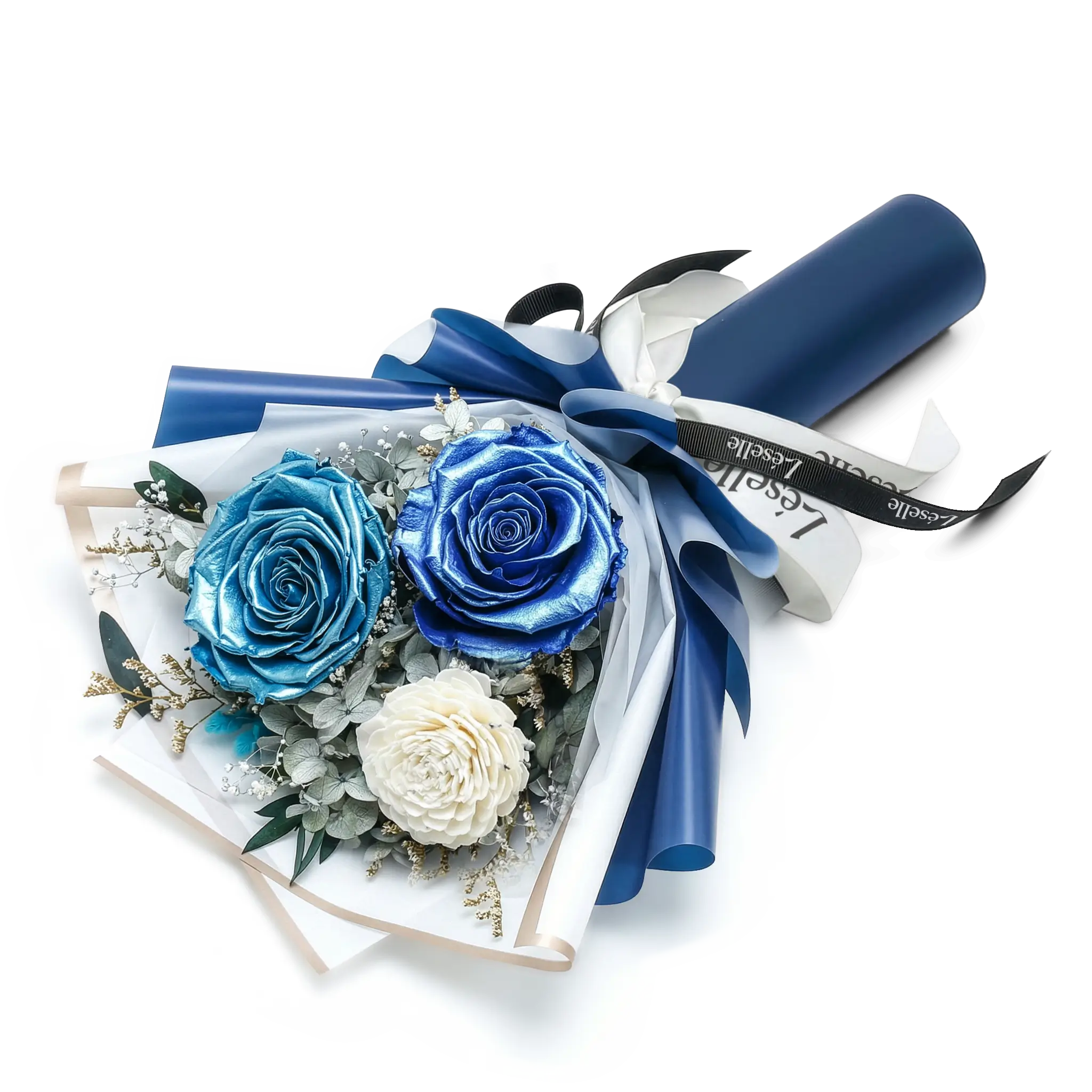 靜謐沁藍玫瑰永生花束