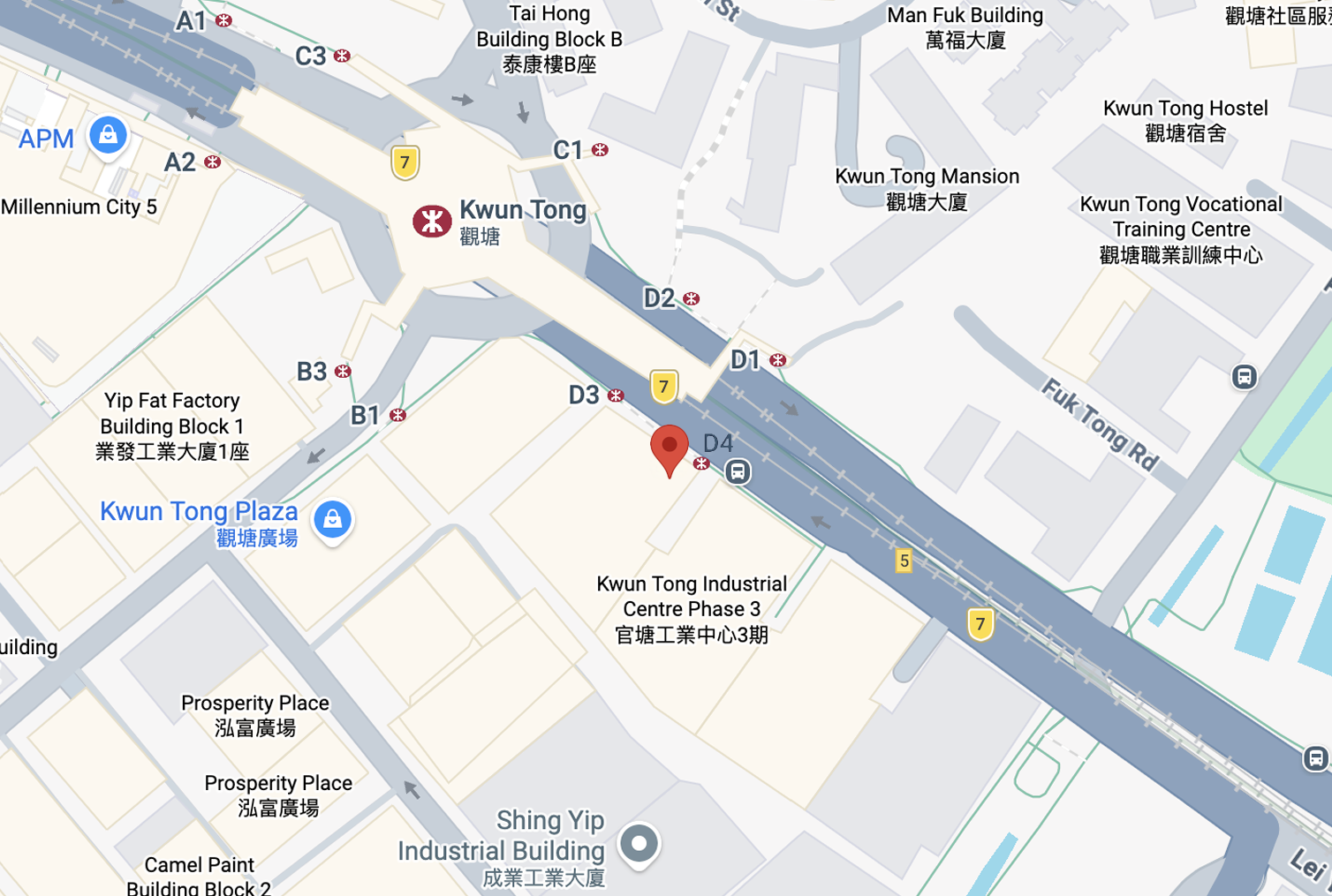 香港九龍觀塘觀塘道 436-446 號官塘工業中心第四期地庫 A 室(觀塘地鐵站 D4 出口)